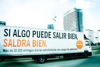 "Si haces las cosas bien, el mundo te devolverá una sonrisa". Busqué en la Red "Vehículos de envialia" y, como suponía, no era el único mensaje rotulado en ellos: