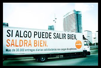 "Si haces las cosas bien, el mundo te devolverá una sonrisa". Busqué en la Red "Vehículos de envialia" y, como suponía, no era el único mensaje rotulado en ellos: