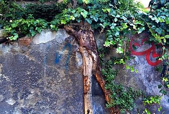 No sé quien fue primero, si la planta que crecía firme o la tapia que la rodea. Lo que sí es cierto es que ambas llevan allí mucho tiempo, quizá demasiado, pues sería difícil separarlas sin sufrimiento.