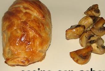 Ingredientes para 4 personas:Un trozo de solomillo por persona2 cebollasMostaza1 Lámina de hojaldreAceite de olivaSalPimientaUn huevo para pintar el hojaldre