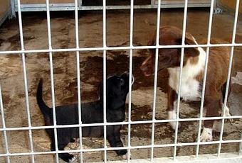 Madre con cachorro. Mestizos ratoneros. son los dos más buenos que el pan. Es muy triste, que ese pequeñin, recien llegado a este mundo ya esté encerrado en la perrera...