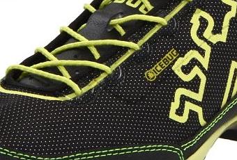 A simple vista parece un calzado normal (a mi parecer bastante bonito), pero esconde un arma que lo hace único. Se trata de su sistema BUGrip® el cual va incorporado en la suela. Este sistema esta compuesto por unos pernos de caucho con clavos de acero en su interior repartidos por toda la planta, pero con una función muy distinta a otros calzados de clavos, y es que cada uno de ellos es independiente y tienen una función dinámica como si de un amortiguador se tratase.