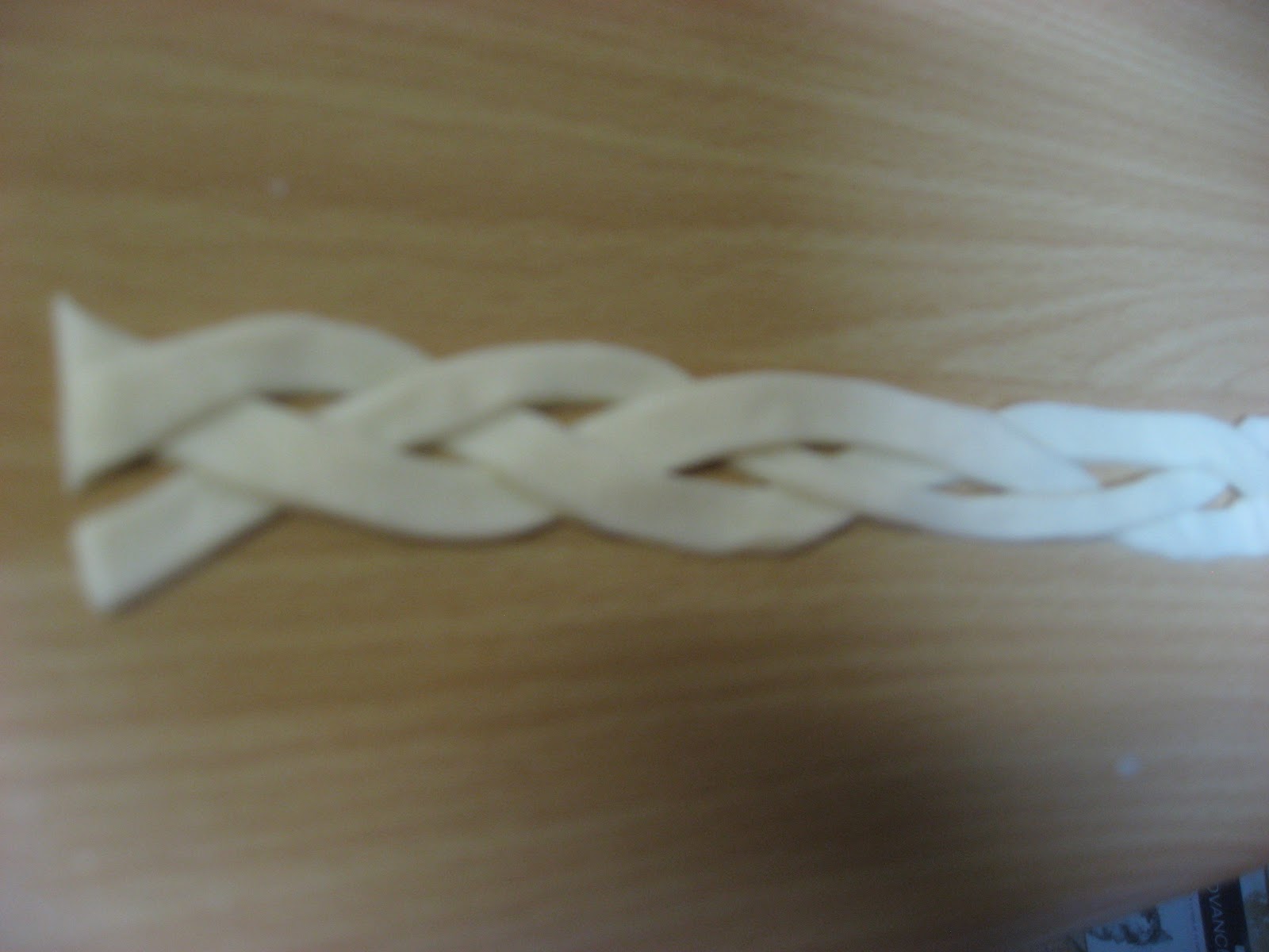 4º - Colocamos la trenza que hemos preparado anteriormente, (Esta no la hemos puesto en el horno con anterioridad)