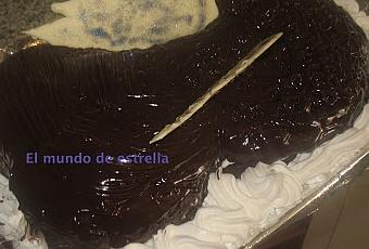 - Derretimos para la cobertura dos tabletas de chocolate con dos botes de nata para montar de los pequeños.