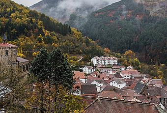 Una vista de Isaba desde el lugar donde hubo un castillo del que hoy en día apenas queda una piedra. Sigue lloviendo, pero ahora puedo usar la cámara para fotografiarlo bajo el paraguas.