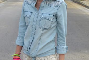 Pero como hoy todavía es viernes, aquí os dejo con un look.Elegí esta combinación de camisa tejana y short de encaje para pasear ayer por la tarde. Son una de esas combinaciones que al principio no te acaban de convencer y luego te sientes super cómoda y no paras de ponértela.Para dalre un punto de color aposté por el "bolsito picnic" así le llamo yo, lleno de florecitas y cuadros blancos y rojos.Espero que os guste,Feliz fin de semana,besitos