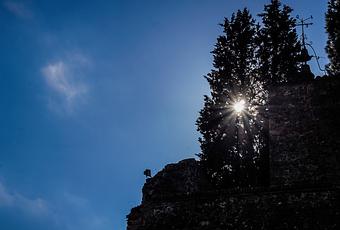 El sol nos ayudó a marcar el tiempo durante muchos siglos. Aquí juega al escondite junto a la torre del reloj del castillo de Hostalric, que marcaba el paso del tiempo con sus campanas.