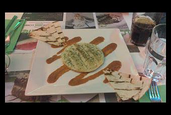 Como entrante pedimos provolone a la parrilla y lo cierto es que estaba bueno, pero venía con unas tortas de trigo (o algo parecido) y estaban algo quemadas, por lo que le daba un sabor raro... (como nos pasó en Cubik con los chipirones, os acordáis??). Por otra parte, estaba acompañado de una salsa de tomate que estaba buena, pero... picaba. Quizá os parezca una tontería pero casi no tolero el picante, así que creo que no hubiese estado de más que nos hubiesen dicho que era una salsa picante.