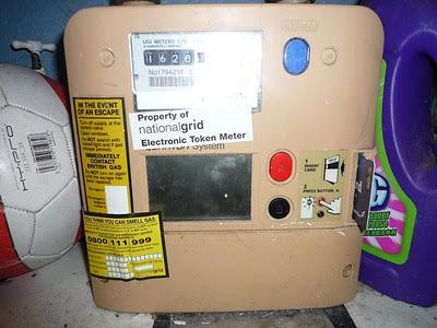 El eléctrico: si quieres tener luz, calefacción, ver la tele o conectarte a internet deberás introducir una moneda por el agujerito, girar la llave y... tachán, se hace la luz. El gas: dos máquinas, cocina y baño. ¿Quieres cocinar (Dios me libre) o ducharte (Dios mediante)? Pues te vas a una tiendecita y como si de tu tarjeta del móvil de hace 10 años se tratara, vas y la recargas, 5 o 10 libras o lo que tú quieras para que British Gas nos dé "llama" y nos caliente a conciencia.