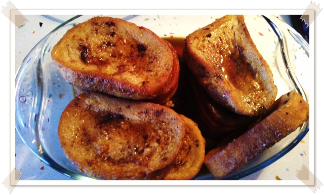 Para realizar esta receta necesitamos:200 gr. De azúcar blancaPan para torrijas (yo lo he comprado en el Mercadona)La peladura de un limón (sin la parte amarilla)Canela en polvo1 Rama de canela1/2 litro de leche (yo usé semidesnatada)2 huevosAceite girasol