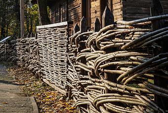 El trenzado de vallas y cercas es una característica distintiva de las viviendas rurales tradicionales en Rumanía, y es común verlo representado en el Museo Nacional de la Aldea "Dimitrie Gusti". Este estilo de trenzado no solo es funcional sino también estéticamente agradable, reflejando la habilidad artesanal y las prácticas tradicionales de las comunidades rurales.