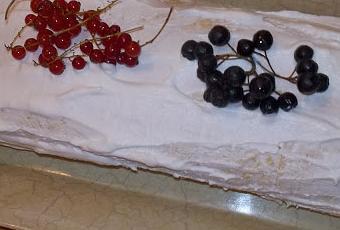 8. Una vez frío, desenrrollamos con mucho cuidado el bizcocho y lo rellenamos con la crema de nata y fresas, bien fría. Por fuera lo ponemos decorar con un poco de nata o simplemente con mermelada reducida con almendras fileteadas pegadas.9. Cortamos en trozos grandes y a disfrutar!.