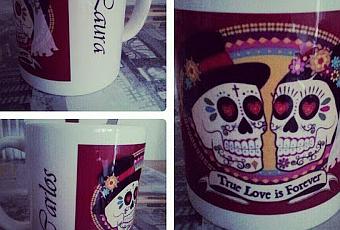 La semana pasada que fuimos a cenar a casa de unos amigos nos sorprendieron con este detallito por nuestra boda. Ella sabe lo que me gustan las calaveras y como publiqué el post de Skull stuff lo vio claro. Son dos tazas, pero yo no pude esperar demasiado a estrenar la mía. A que es mona?