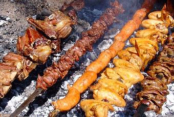 Doran al sol y al calor de las brasas las suculentas tiras de chuparse hasta el hueso, hay quien se atiborra de mollejas, me dan pereza las alitas de pollo por sus escuálidas carnes, prefiero el sabor tostado de los chorizos parrilleros. Corazones de vaca fileteados con todo corazón nos gusta a todos: por manojos salen cada tanto los anticuchos, esos corazones trinchados en palillos para ser devorados en caliente con salsa picante de maní y acompañamiento de papas y cebollas blancas retostadas. Así nos perdimos toda la tarde, de bocado en bocado, unos con fernet -ese licorcillo que parece salido de la botica de abuela- para sosegar la digestión; otros degustando con altura el milenario vino, perdición de dioses y mortales de otras épocas.