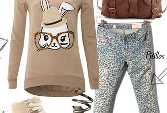 Esta es mi propuesta para otoño, un suéter fino con éste dibujo tan cuco, pitillo vaquero de print animal y zapatillas tipo converse con tachuelas ¡Un look ideal para ir de shopping!