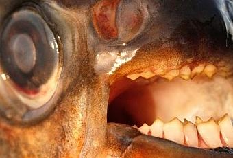 ¿Pero por qué los bañistas deben tener cuidado? El pacu adora aplastar nueces con sus poderosas quijadas y a veces puede confundir los órganos reproductivos masculinos con su snack favorito.