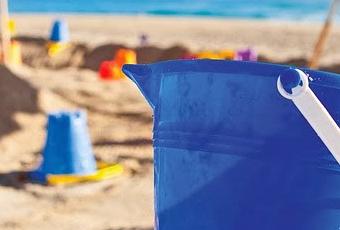Tanto querer playa, tanto querer playa y al final no pisábamos la playa. Tenía una explicación. Para mi, era mucho mas cómodo sentarme en una hamaca o en la escalera de la piscina y controlar a los cachorros, que lo que os relato a continuación:Lo primero, la logística: cubos, palas, moldes. Manguitos para Currita, gafas y aletas para Currito. Agua, toallas, cremas, pañales, toallitas. Para mi una coca cola, que nunca me bebo por falta de tiempo (lo de bajarme un libro ya lo superé). Lo segundo: busca un sitio cerca de la orilla, a ser posible con algún niño cerca y lejos de personas mayores ya que, Currita puede hacer lanzamientos de arena en cualquier momento. Por suerte la sombrilla y la hamaca eran de la casa, y ya estaban en su sitio.