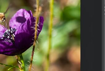 Partimos de esta imagen, lo que queremos es desenfocar mas el fondo para enfatizar mas al insecto y a la flor, suponemos que nos hemos equivocado y hemos desenfocado demasiado y seguimos editando la imagen o bien no hemos duplicado la capa para poder recuperar el insecto después del desenfoque, el resultado es este.