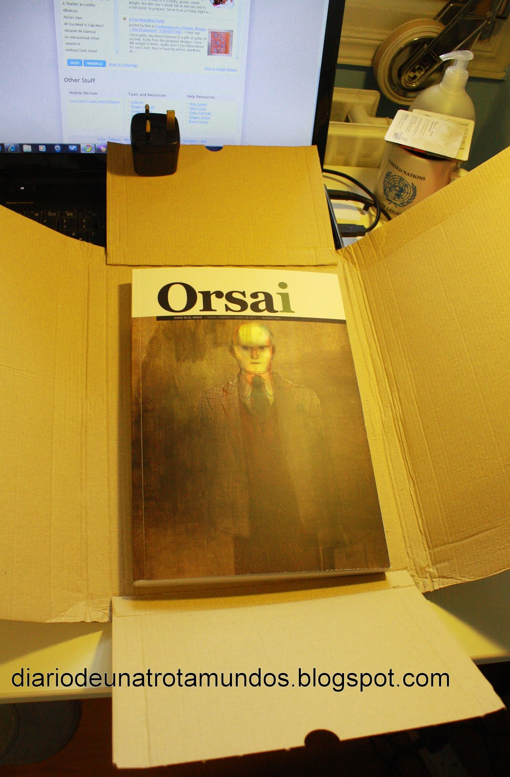 Cansado de los miedos a la piratería en internet que marca una visión siglo XX (como la llama) del negocio editorial, y pensando tambien en quienes no podrían comprar la revista pero podrían querer leerla, planificó una revista que estuviera disponible en internet, en versión .pdf 10 días despues de su distribución en papel. Temeroso de dejar de disfrutar su trabajo por pensar en perdidas y ganancias, asumió el compromiso de no imprimir un sólo número de la revista más que aquellas que se hubieran encargado hasta 40 días despues del plazo para su pre-compra. Aunque la revista fuera un éxito tan grande que todos quisieran una, sólo se imprimirían las que se encargaran hasta el 10 de diciembre de 2010 y ni una más. Extrañando las pizzas que hacía su amigo Comequechu en su ciudad natal, comiendo las cuales matizaba largas noches de trabajo en la redacción de una revista que duró poco, decidió llevar amigo y pizzería a Barcelona e instalar ésta debajo de su editorial. Y este salto al vacío que podía parecer una locura, y estas ideas que podían parecer una utopía, encontraron eco en muchas personas deseosas de soñar junto con los autores y de creer que puede haber otra forma de hacer las cosas y que, cuando hay ganas y garra, los sueños son sólo una pre-realidad.Así, para sorpresa de unos cuantos, los primeros dos días en que se abrió la venta de la revista, se vendió una cada 39 segundos y, en los 40 días habilitados para encargarla, hicieron lo propio 10080 personas, juntándose incluso con extraños para encargarla en packs de 10, (que era el mínimo requerido) y sin tener la más remota idea de cuál iba a ser su contenido. Y, como no podía ser de otra manera ***, y porque creo que, en palabras de García Marquez, "la solidaridad con nuestros sueños no nos hará sentir menos solos mientras no se concrete en actos de respaldo legítimo a los pueblos que asuman la ilusión de tener una vida propia en el reparto del mundo", tomé mi tarjeta de crédito y me transformé en una de esas 10080 personas que encargaron y esperaron con ansias la llegada por correo de su ejemplar de Orsai Revista. El sobre que ven al comienzo de este post y la revista que ven, apenas abierto el sobre en la foto de más arriba, son míos. Y aquí estoy yo, aún vestida con mi trench, acabada de llegar del correo en una mañana lluviosa, abrazando mi revista, que es casi casi como abrazar un sueño****.