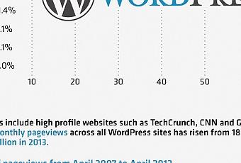 Para tener una idea del enorme crecimiento que esta teniendo worpress, podemos ver que el número de páginas vistas mensuales con sitios wordpress instalados han pasado de 187 Millones en 2007, a un más de 4 billones en 2013.