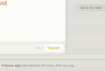 Es minimalista, tanto, que no te deja recibir ningún twit. En realidad lo único que puedes hacer es enviar un twit o escribir hasta tres borradores de twits. Como se ve en la siguiente imagen.