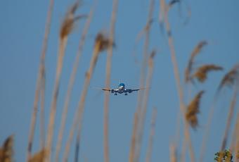 Aviones haciendo cola en el aire para aterrizar.