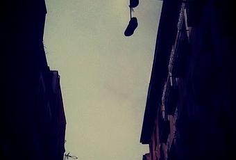 El amigo Fernando Casado nos envía esta "zapatilla y cable de reciente "cuelgue" cerca del centro de salud de la calle Alameda (el de las escaleras infames), Madrid." Muchas gracias compañero.