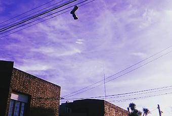A la mañana siguiente los vecinos ven las zapatillas colgadas en el cable que cruza la calle.