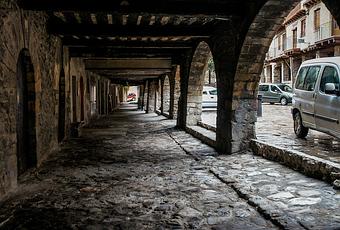 Normalmente este pórtico está lleno de mesas y sillas de los bares. Hoy no era el día.